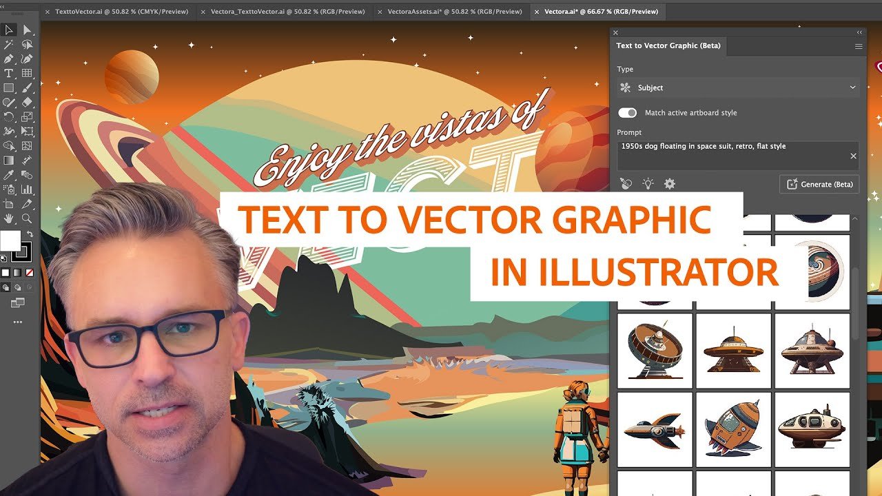 Adobe Illustrator đã tích hợp một số tính năng Generative AI (AI tạo sinh) giúp bạn tạo đồ họa vector độc đáo tự động từ mô tả bằng văn bản. Một trong những tính năng nổi bật nhất là Text to Vector Graphic – công cụ cho phép bạn tạo cảnh (scene), chủ thể (subject) và biểu tượng (icon) dựa trên mô tả văn bản, cực kỳ hữu ích cho thiết kế nhanh và sáng tạo.